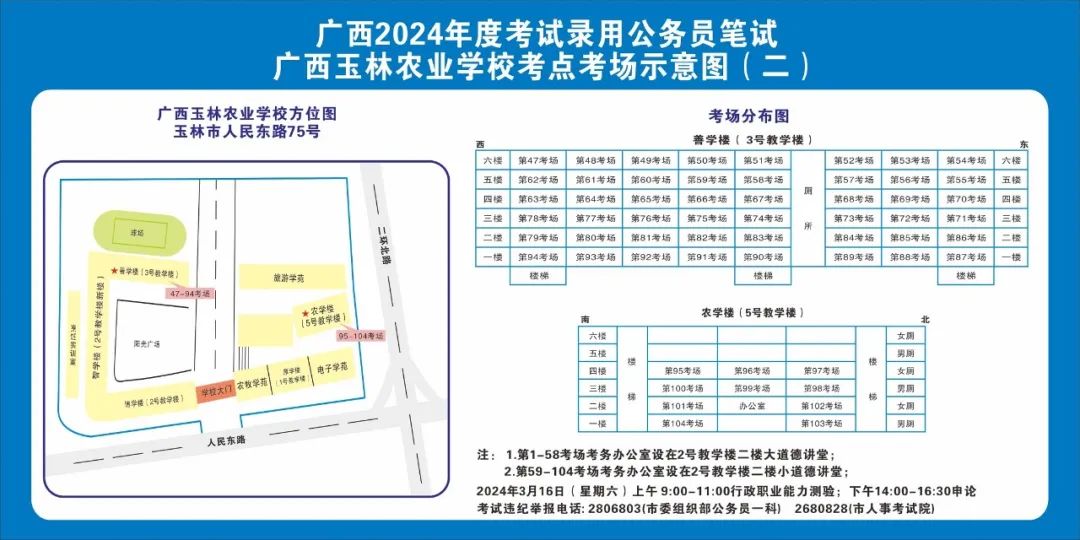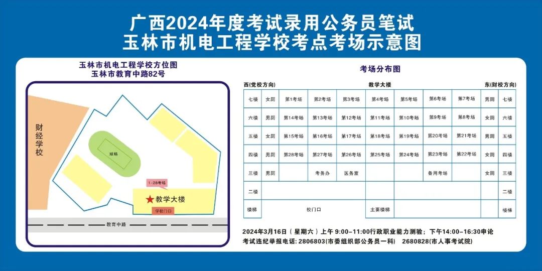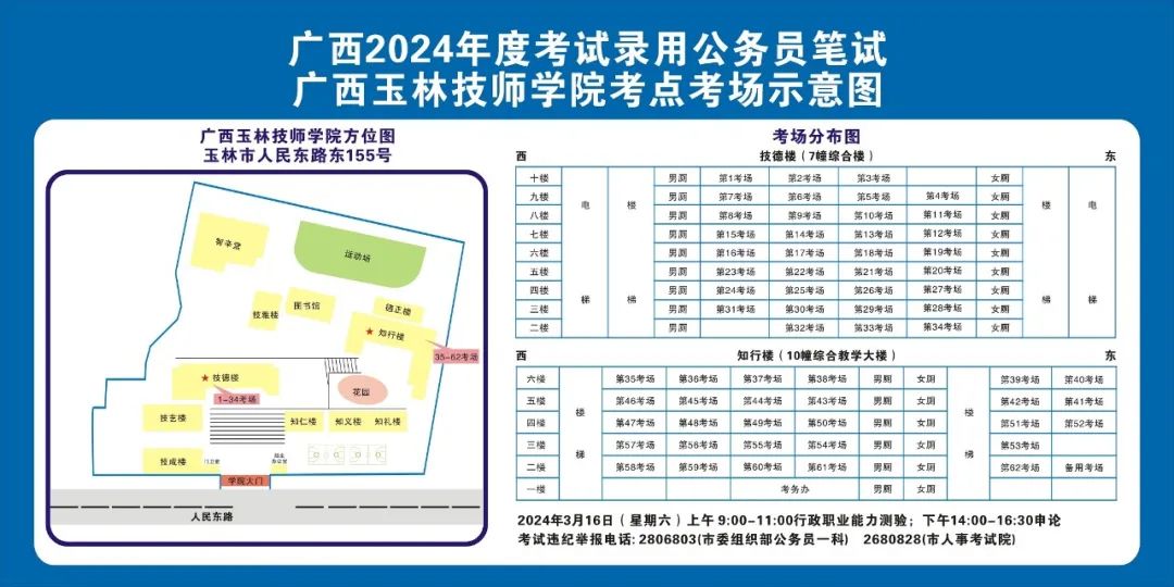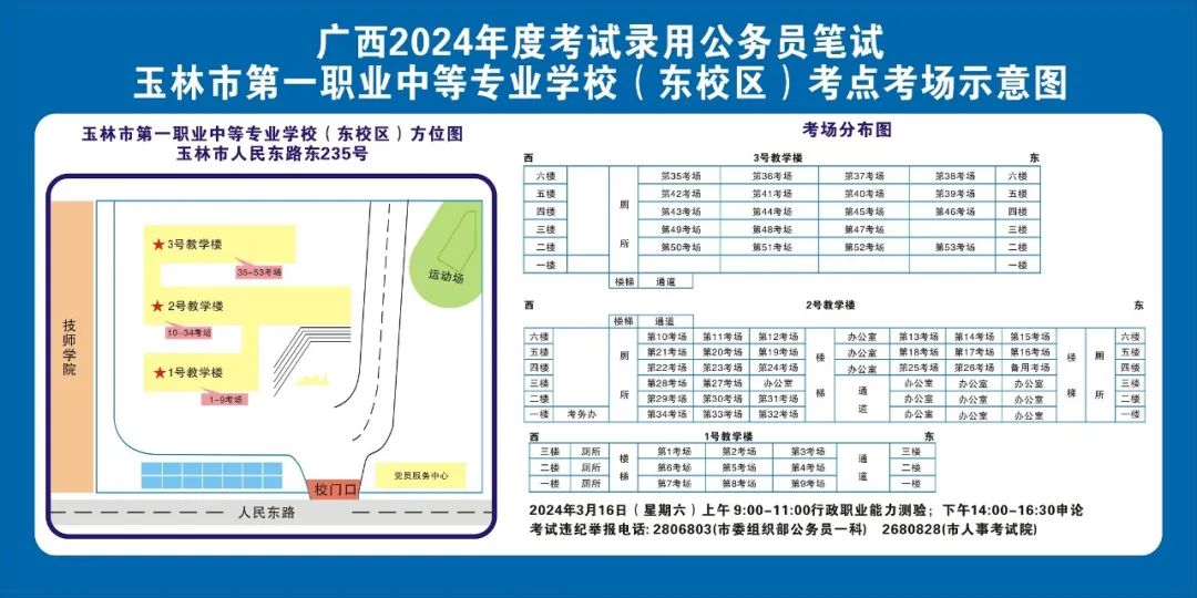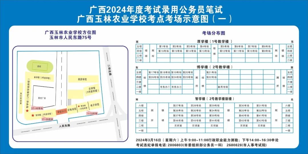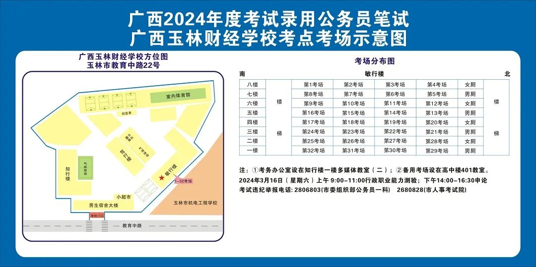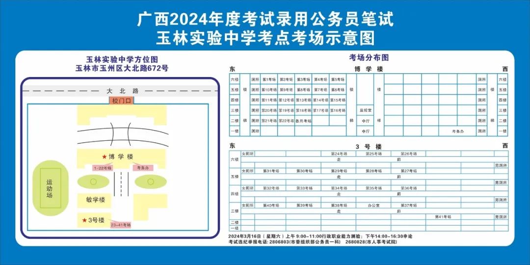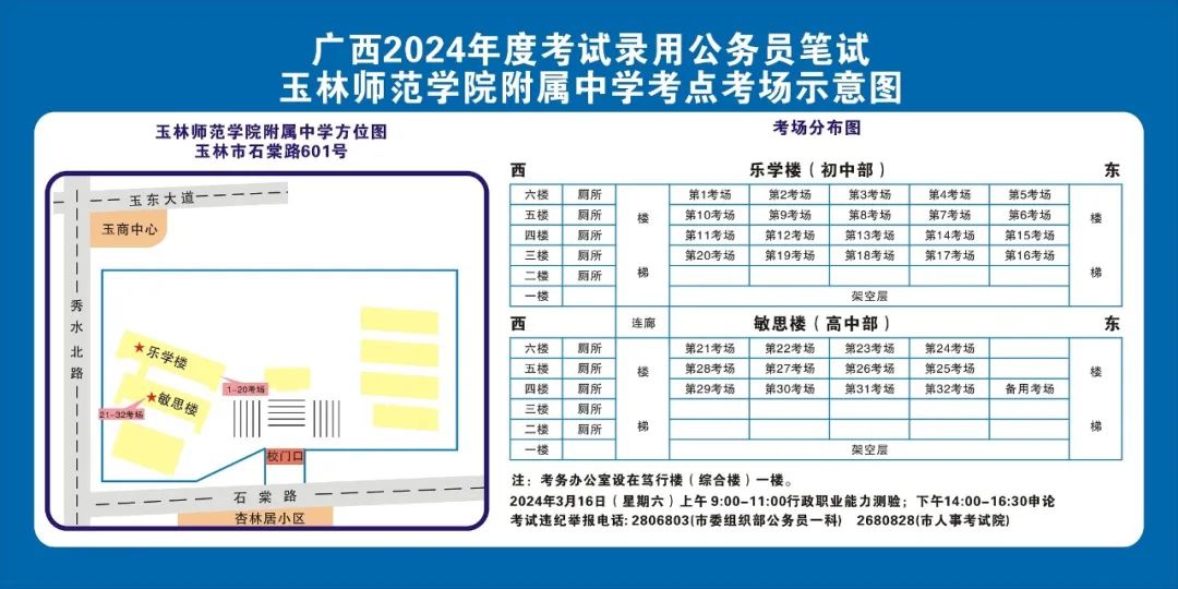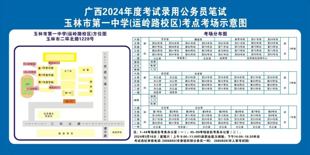 除考試當(dāng)天考生可以進(jìn)入考點外,考生不得提前進(jìn)入考點查看考場(學(xué)校將在大門處擺放考場分布示意圖),玉林考區(qū)10個考點的考場布置情況如下: