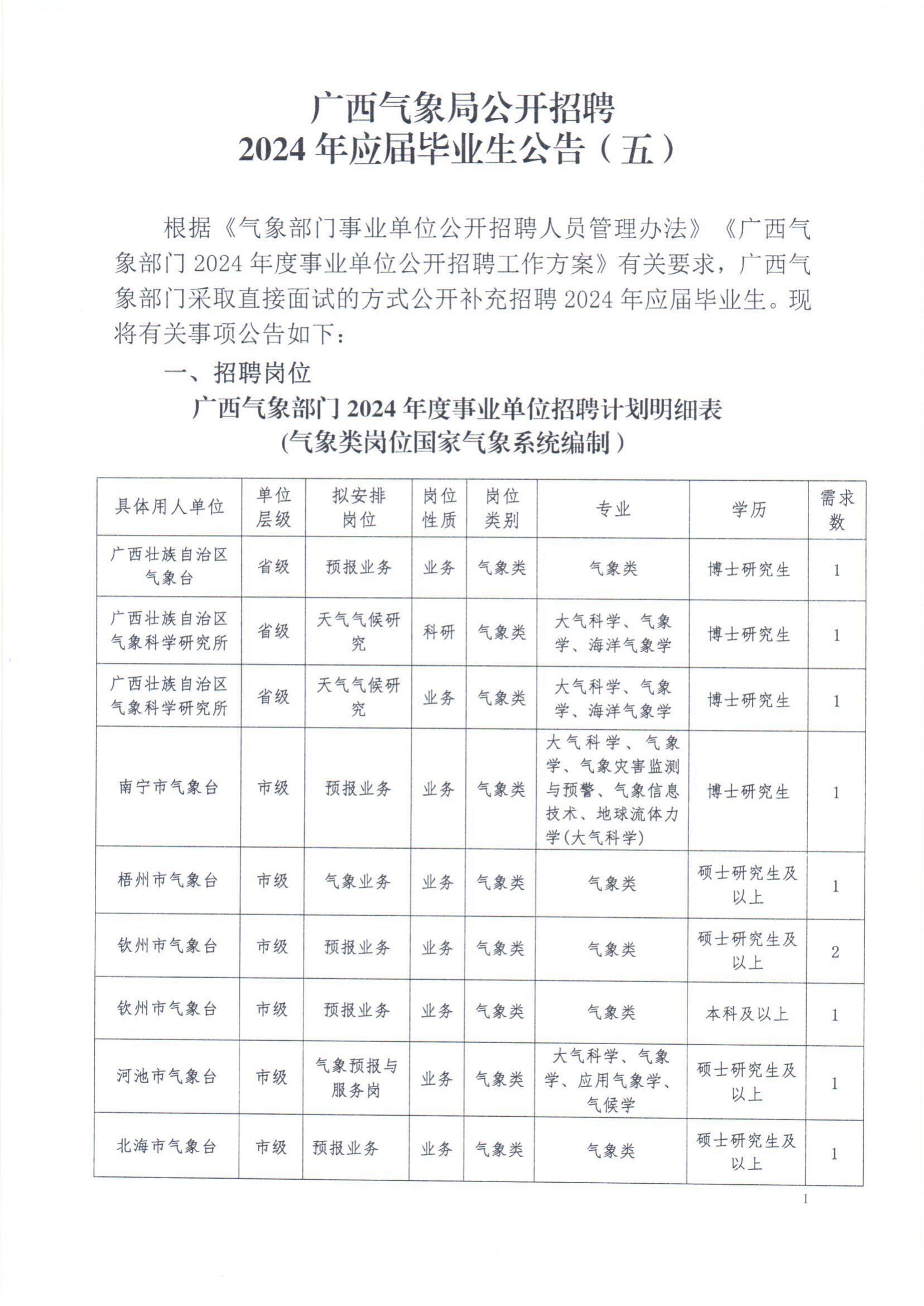 廣西氣象局公開招聘2024年度應(yīng)屆畢業(yè)生13人公告(五)