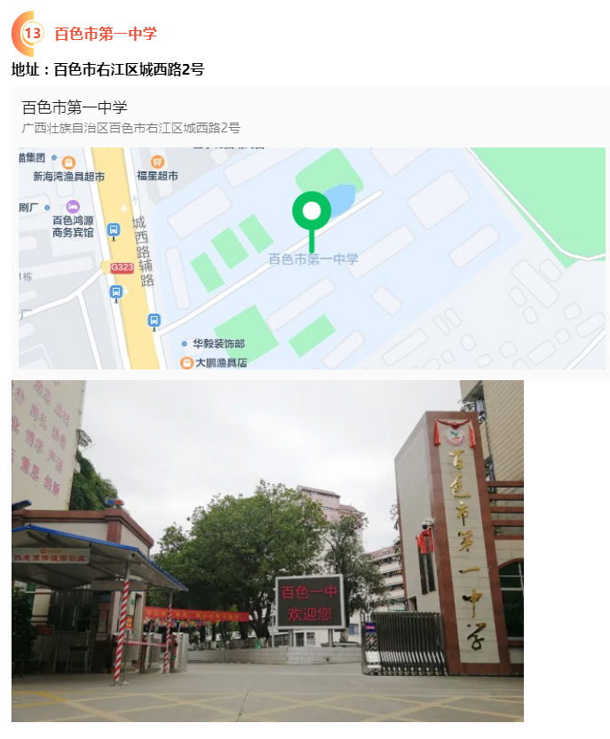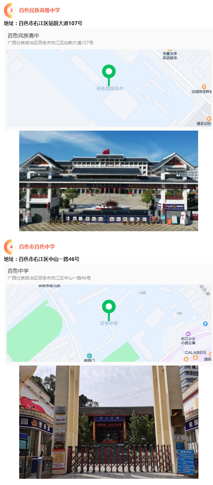 2.請(qǐng)?zhí)崆笆煜た键c(diǎn)地址,做好路線、住宿的安排。本次考試參考人數(shù)較多,考點(diǎn)分布分散,建議考生考前實(shí)地察看考點(diǎn),確認(rèn)考點(diǎn)入口位置,防止走錯(cuò)考點(diǎn)。請(qǐng)充分考慮考點(diǎn)周邊交通通行情況和停車場(chǎng)地容量,合理安排出行方式,預(yù)留充足時(shí)間,確??荚嚠?dāng)天按時(shí)到達(dá)。另外,考試期間百色市及各考點(diǎn)學(xué)校周邊的住宿比較緊張,請(qǐng)?zhí)崆邦A(yù)定。