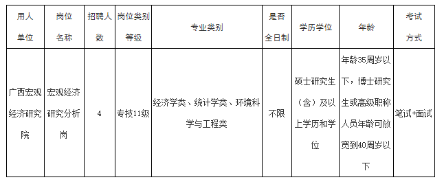 本次公開招聘實名編制工作人員4名,要求普通高等學校畢業(yè),經(jīng)濟學類、統(tǒng)計學類和環(huán)境科學與工程類專業(yè),具有碩士研究生(含)及以上學歷和學位,年齡35周歲以下(年齡截止報名首日),博士研究生或高級職稱人員年齡可放寬到40周歲以下(年齡截止報名首日)。