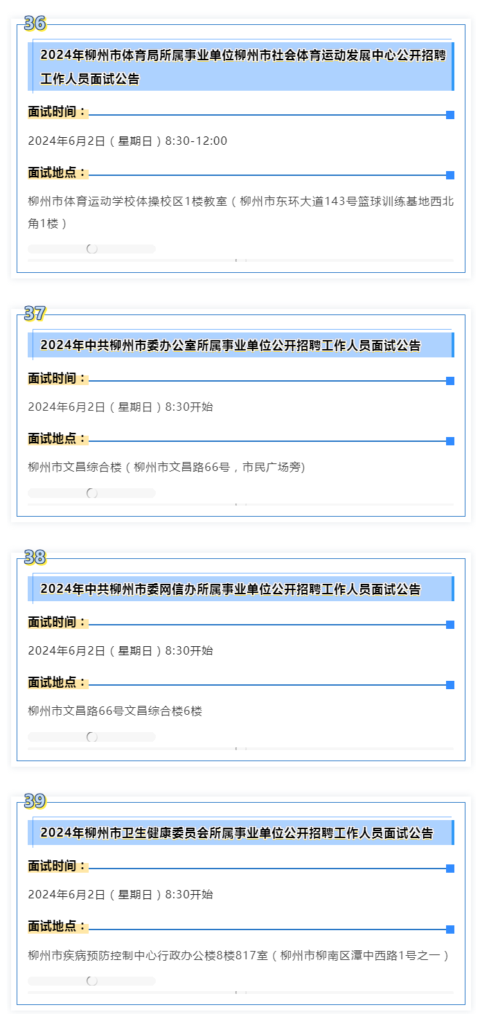 2024年度柳州市事業(yè)單位面試 本周末啟動(dòng)