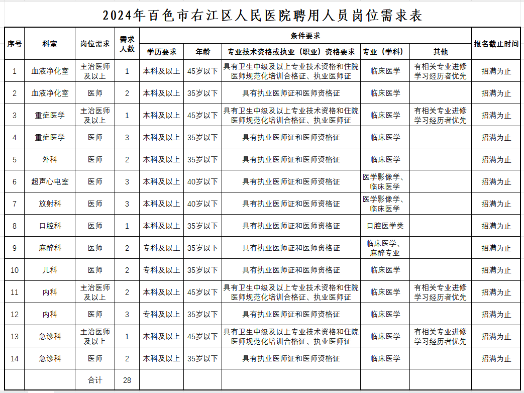 原文標(biāo)題:百色市右江區(qū)人民醫(yī)院2024年公開招聘工作人員公告