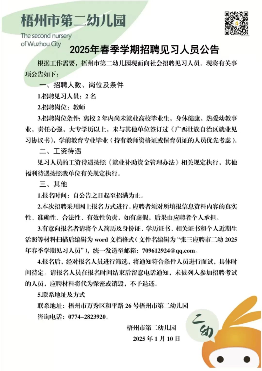 2025年梧州市第二幼兒園春季學(xué)期招聘見(jiàn)習(xí)人員公告