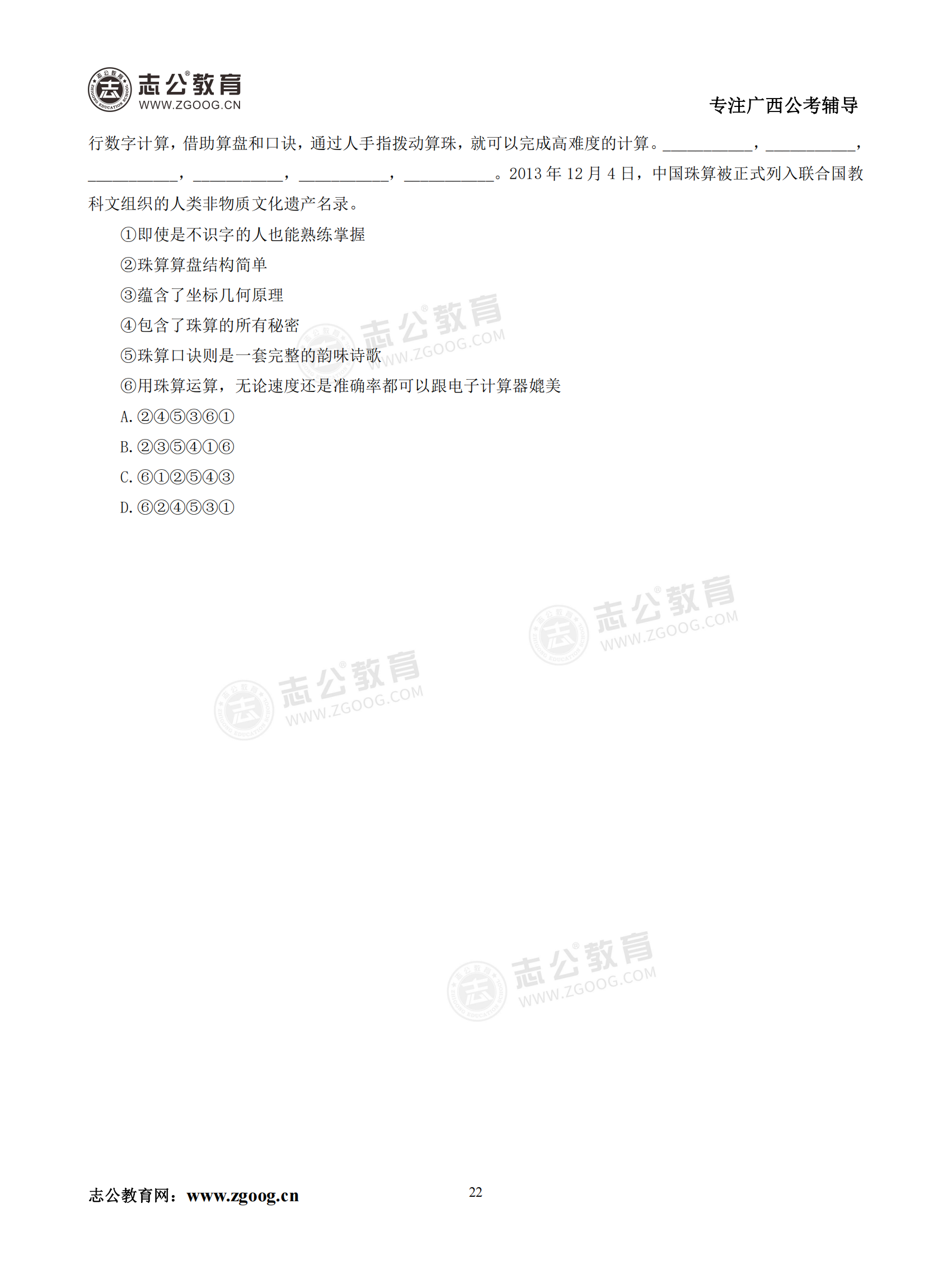【公考模塊練習(xí)】言語理解題六(試題)