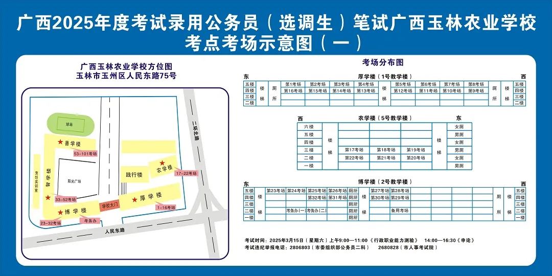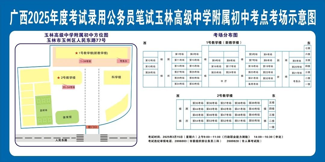 除考試當(dāng)天考生可以進(jìn)入考點(diǎn)外,考生不得提前進(jìn)入考點(diǎn)查看考場(學(xué)校將在大門處擺放考場分布示意圖),玉林考區(qū)11個(gè)考點(diǎn)的考場布置情況如下: