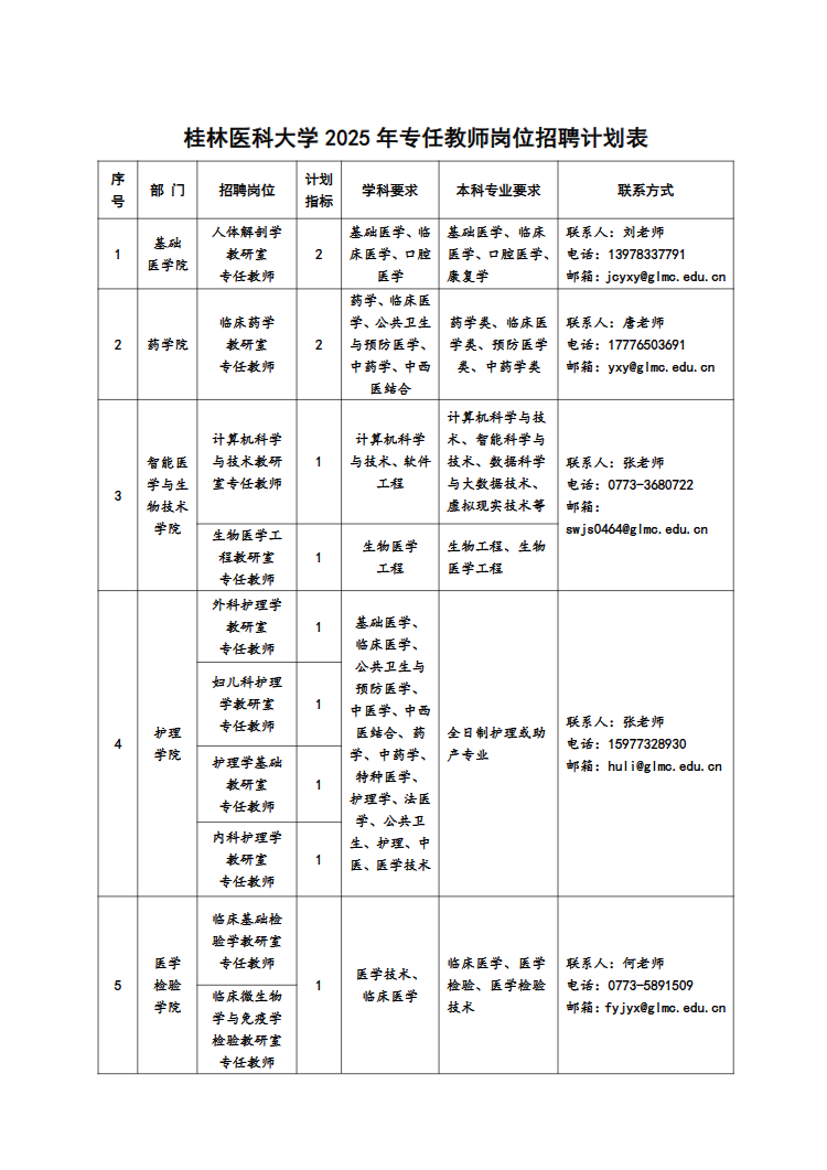 (二)各部門聯(lián)系方式見:桂林醫(yī)科大學(xué)各崗位招聘計劃表。