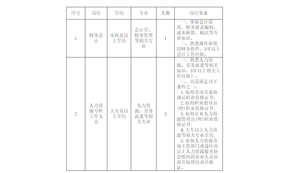 一、招聘崗位和條件