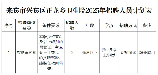 原文標(biāo)題:來賓市興賓區(qū)正龍鄉(xiāng)衛(wèi)生院2025年公開招聘編外人員公告