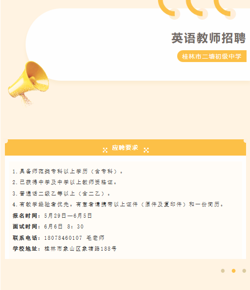 原文標(biāo)題:桂林市二塘初級中學(xué)招聘英語老師一名