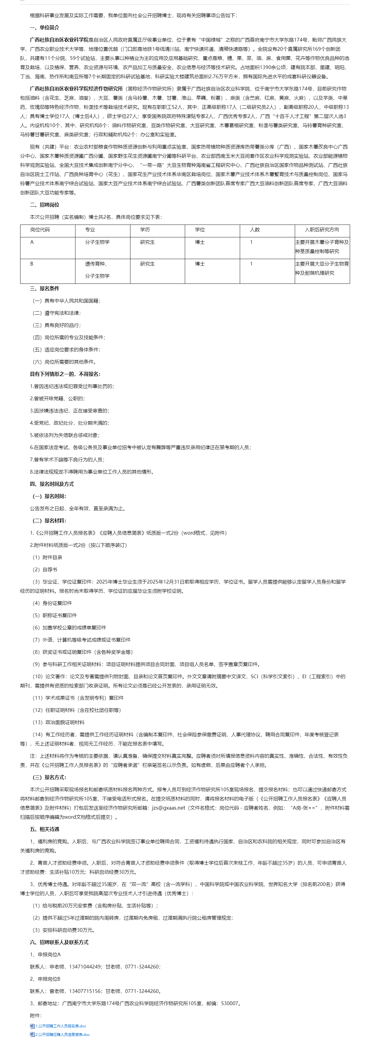 廣西農(nóng)業(yè)科學(xué)院經(jīng)濟作物研究所2025年博士公開招聘公告