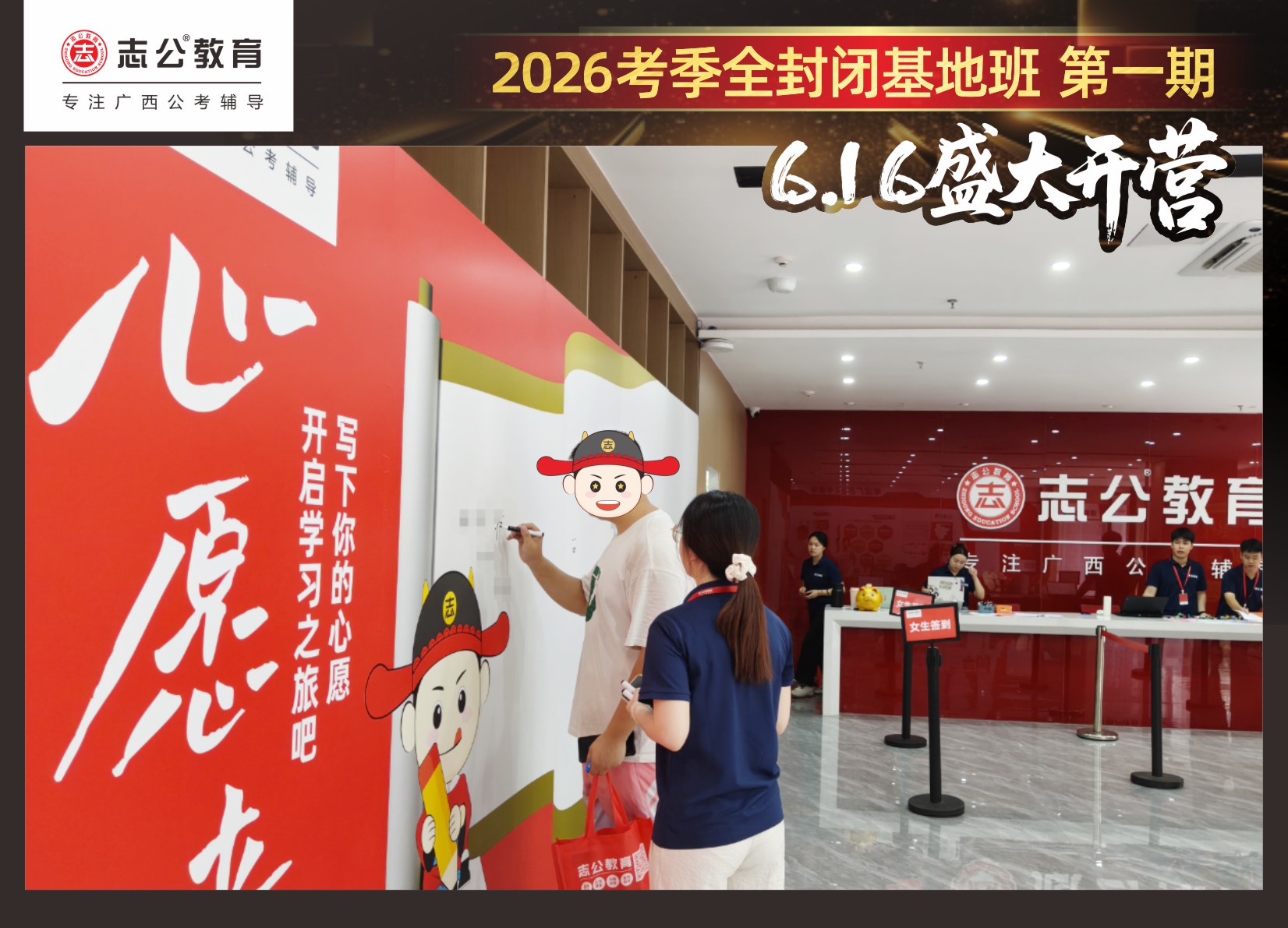 6月16日,志公教育基地班在萬眾翹首以盼中,正式拉開帷幕!來自各地的學員們,懷揣著夢想與憧憬匯聚于此,以“躍龍門”的非凡勇氣和“走紅毯”般的自信姿態(tài),鄭重地書寫下屬于自己的“上岸心愿”。在這場充滿儀式感與溫馨氛圍的啟程儀式中,開啟了新篇章。