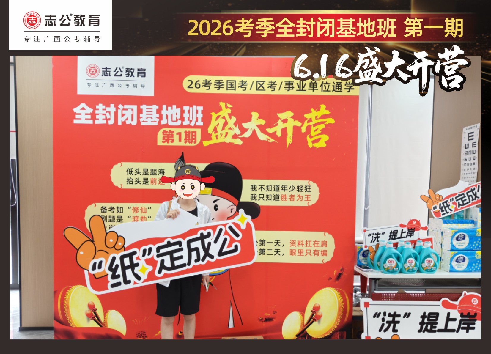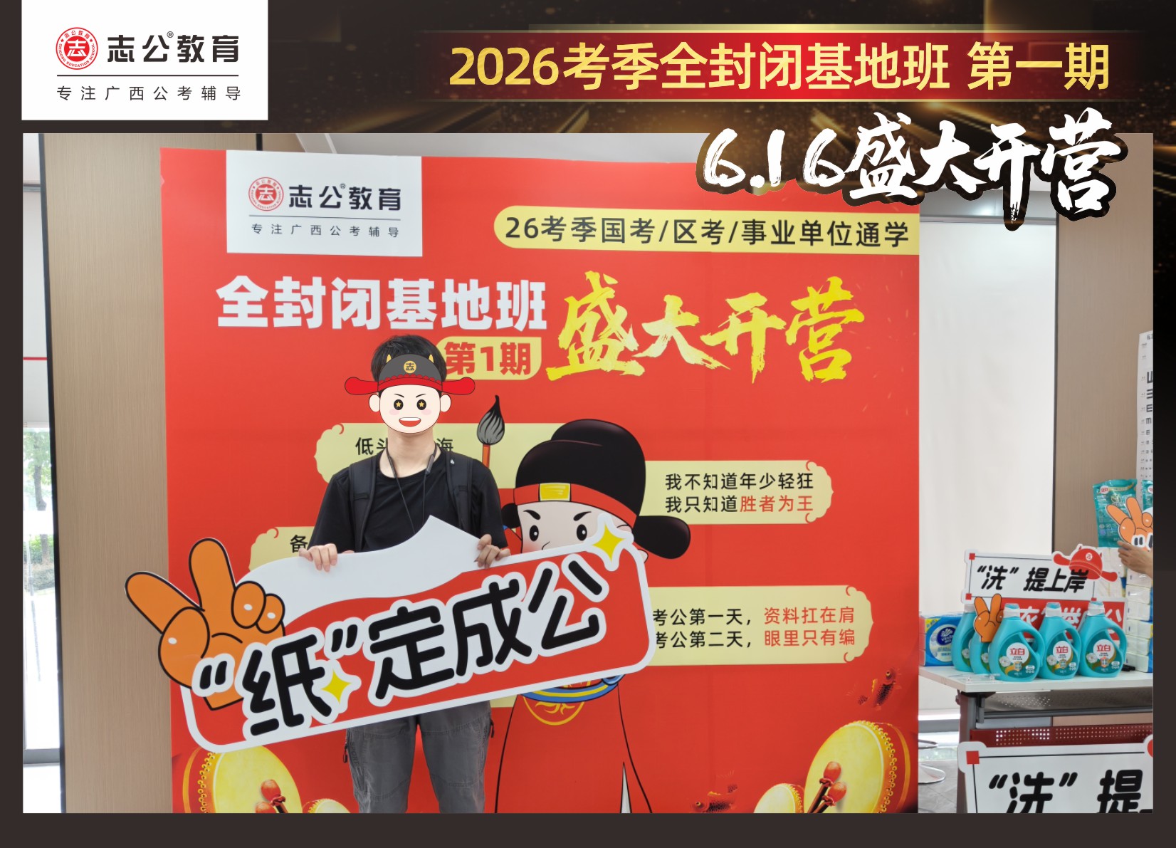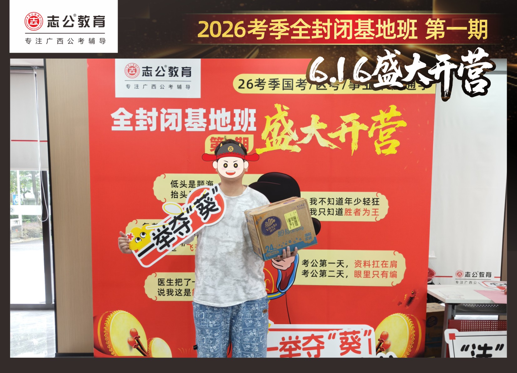 由于這段時(shí)間受臺(tái)風(fēng)影響,南寧迎來(lái)下雨天,但學(xué)員們滿懷先一步備考,快一步成功圓夢(mèng)的滿滿炙熱信心,早早就在志公教育(中關(guān)村)全封閉基地前臺(tái)等候,6月16日,志公教育26考季全封閉基地班第1期的學(xué)員們齊聚一堂,正式開(kāi)啟他們的公考備戰(zhàn)之旅。簽到環(huán)節(jié)作為基地班課程的第一站,不僅是對(duì)學(xué)員們的歡迎儀式,更是他們邁向夢(mèng)想的第一步。