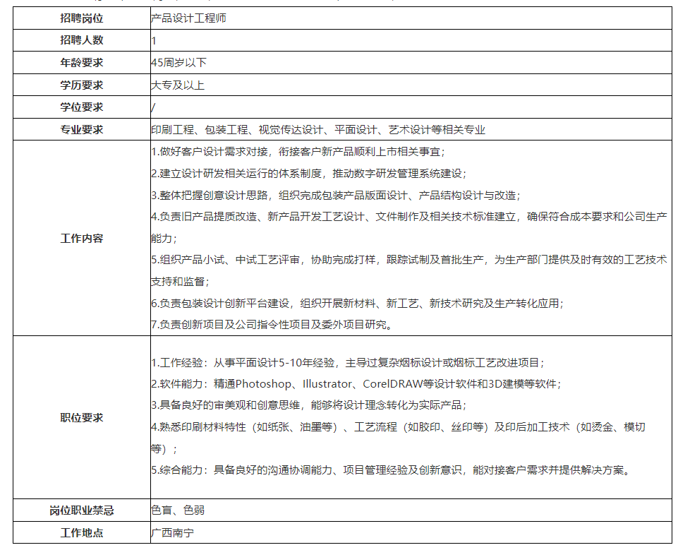 公司以創(chuàng)新引領(lǐng)發(fā)展,公司先后獲得“全國(guó)印刷示范企業(yè)”、“中國(guó)煙標(biāo)印刷行業(yè)最具實(shí)力十大領(lǐng)軍企業(yè)”、“廣西制造業(yè)企業(yè)50強(qiáng)”,連續(xù)三年獲得“廣西優(yōu)秀企業(yè)”、“賀州市億元納稅企業(yè)”等榮譽(yù)稱(chēng)號(hào)。公司秉承以人為本的理念,尊重人才、重視人才,開(kāi)展員工職業(yè)發(fā)展規(guī)劃,為每一位員工提供廣闊的發(fā)展機(jī)會(huì),充分發(fā)揮員工自主性和創(chuàng)造性。根據(jù)公司發(fā)展需要,現(xiàn)面向社會(huì)公開(kāi)招聘員工。具體事項(xiàng)公告如下: