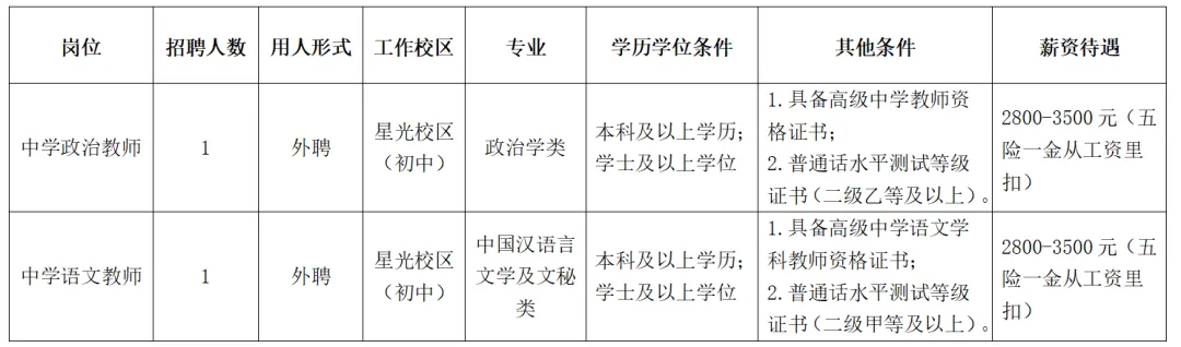 根據(jù)學(xué)校工作需要,南寧市第十中學(xué)星光校區(qū)(初中部)面向社會招聘教職工,具體崗位如下: