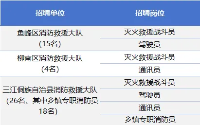 為滿足社會經濟迅速發(fā)展對消防力量的需求,積極適應新形勢新任務新要求,結合單位編制及工作情況需要,柳州市消防救援支隊擬面向社會公開招聘政府專職消防員、鄉(xiāng)鎮(zhèn)專職消防員,熱忱歡迎熱愛消防、銳意進取、敢于挑戰(zhàn)的廣大有志青年加入。詳情如下: