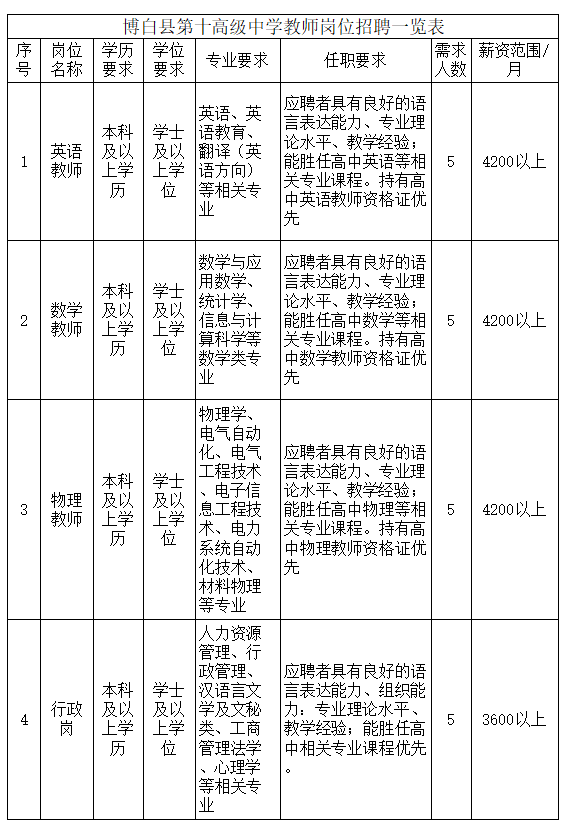 原文標題:博白縣第十高級中學(xué)2025年人才招聘