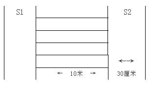 場(chǎng)地器材:10米長的直線跑道若干,在跑道的兩端線(S1和S2)外30厘米處各劃一條線(圖1)。木塊(5厘米×10厘米)每道3塊,其中2塊放在S2線外的橫線上,一塊放在S1線外的橫線上。秒表若干塊,使用前應(yīng)進(jìn)行校正。