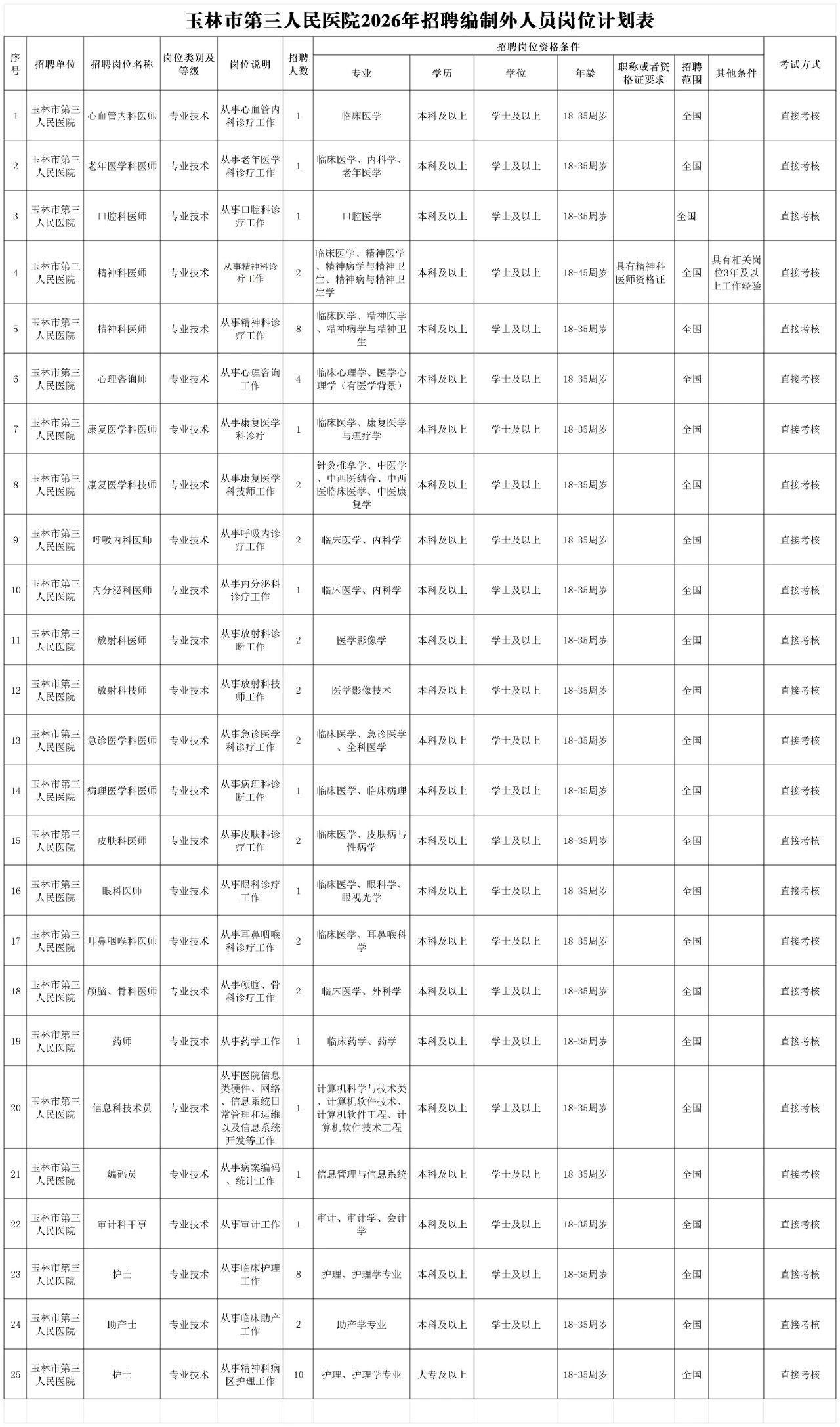 原文標(biāo)題:2026年玉林市第三人民醫(yī)院公開(kāi)招聘編制外人員公告