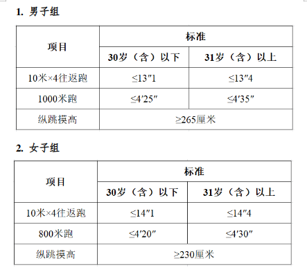 備注:年齡計算時間截止到參加體能測評當月。