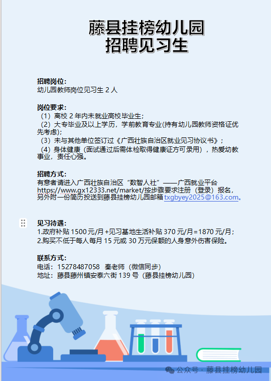 原文標(biāo)題:藤縣掛榜幼兒園2026年春學(xué)期招聘見(jiàn)習(xí)老師公告